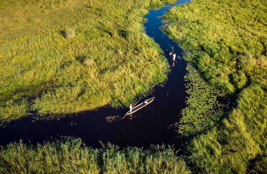 アフリカの「最後のエデン」と呼ばれるオカバンゴ・デルタはアフリカで最も美しく、非常によい状態で保護されている生態系の一つです。ボツワナの北部、カラハリ砂漠の中にある内陸デルタで、オカバンゴ湿地などとも呼ばれボツワナ初の世界自然遺産です。オカバンゴデルタは、3月から6月にかけてアンゴラからデルタに至る洪水による季節的な洪水の影響を受け、7月にピークに達します。このピークはボツワナの乾期と一致し、乾期の後背地から平野の遊歩道が大きく移動します。