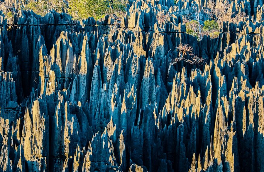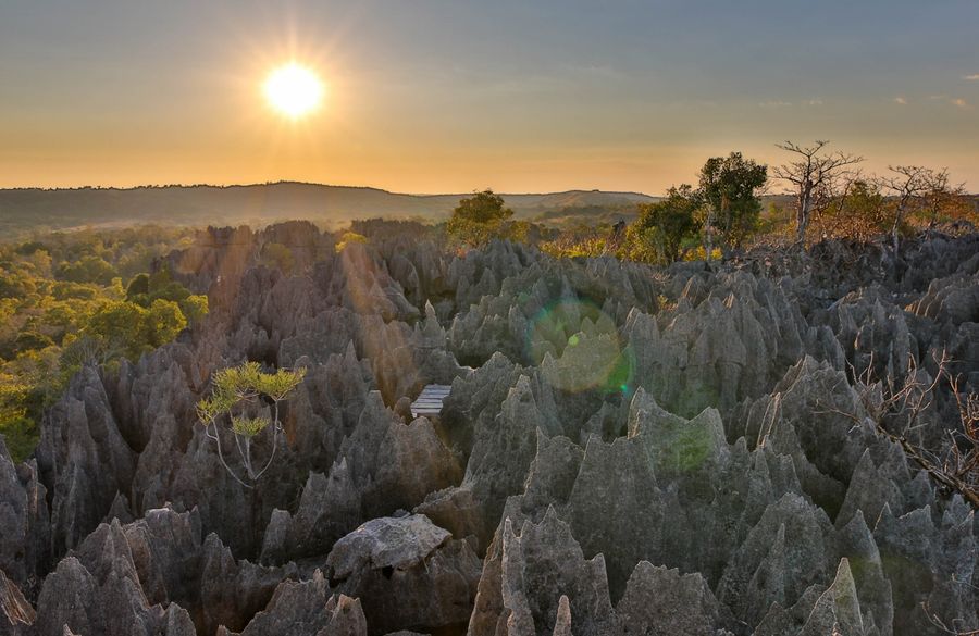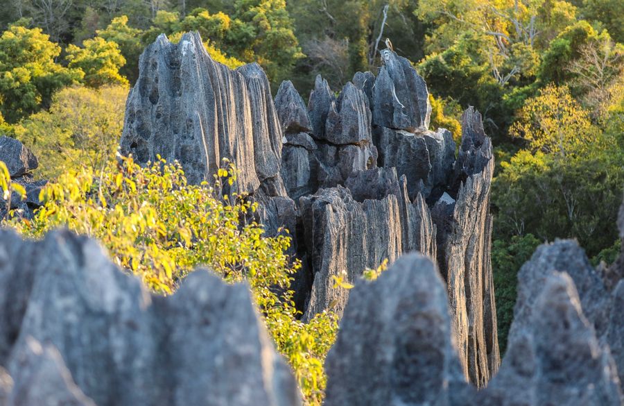 石灰岩のカルスト台地が、数万年かけて侵食され、先の尖った岩が並ぶツィンギ。原生林が大地、渓谷を覆っており数多くの動物が生息しています。