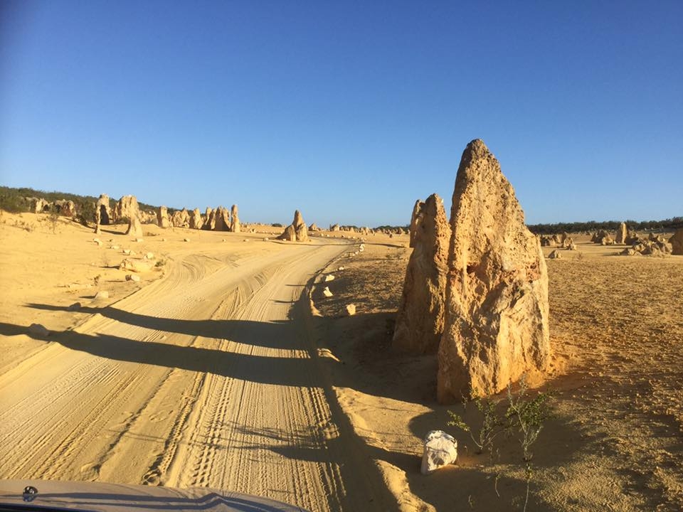 パース中心部から約200キロ北のほう、その砂漠の地面からニョキニョキと出てきているような無数の奇岩があります。西オーストラリアの空にそびえる「ピナクルズ」がインド洋に近い。海洋生物の貝殻等で形成された石灰岩の層が、長い期間に渡り植物の根によって侵食されて、また風や雨で風化が続く不思議な光景です。