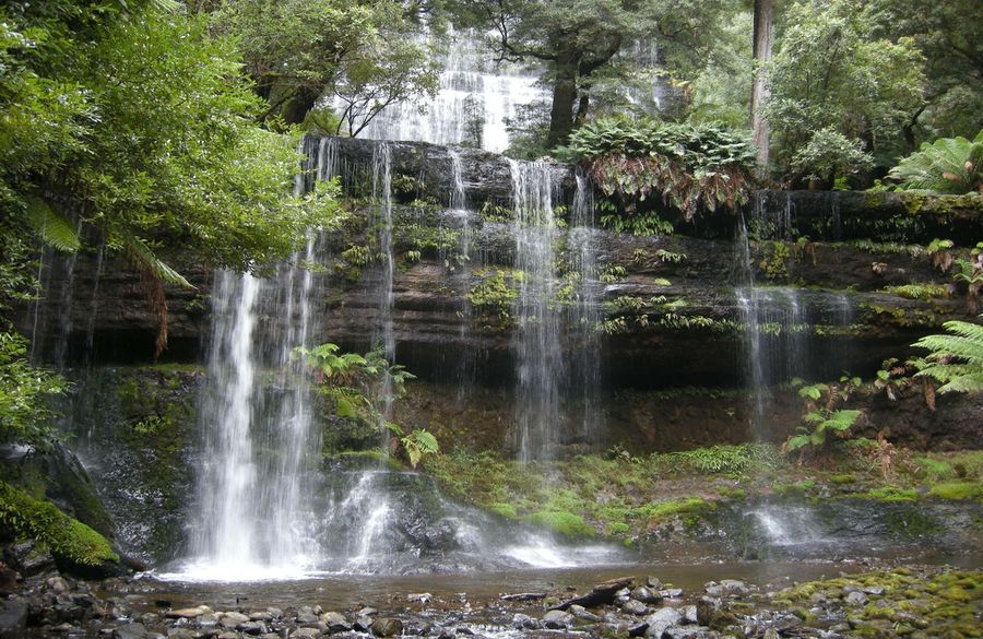 世界遺産マウントフィールド国立公園では、樹高70mを超える巨大ユーカリや南極シダがうっそうと繁る寒帯雨林の森を散策しながら、雄大なラッセル滝を見学。