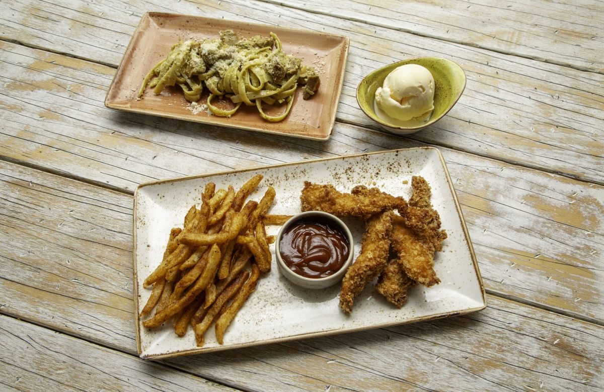 メイン料理: チキンアルフレッド パスタ(ミニサイズ) またはマルガリータピザ (1品を当日選択してください。)