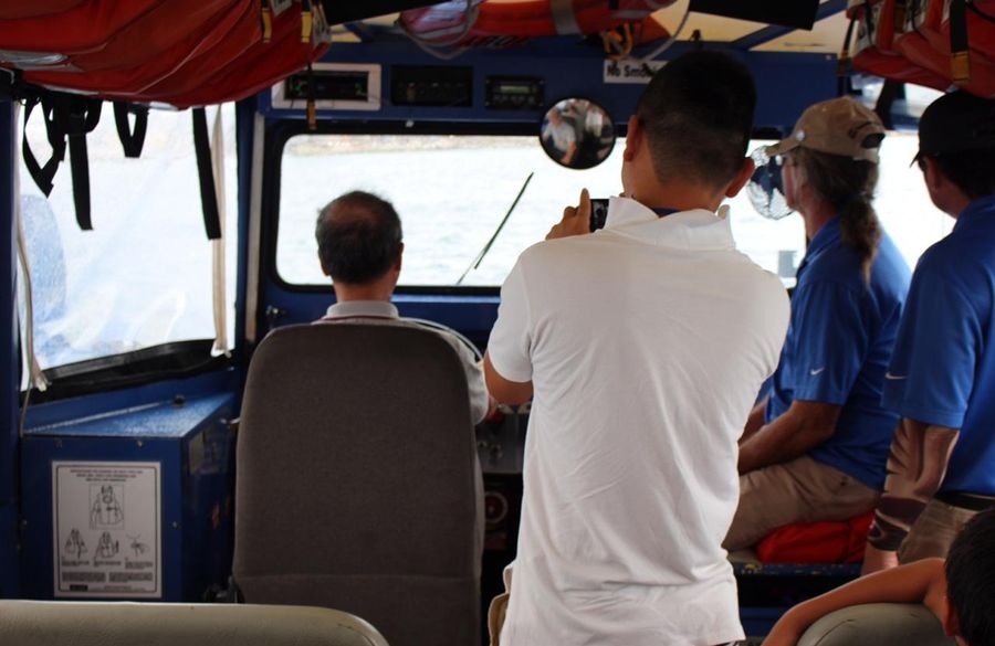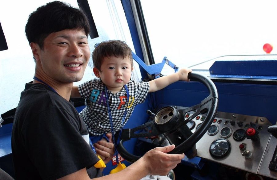 大興奮ながらも楽しさ満点!! 赤ちゃんから大人、シニアの方まで安心して楽しめるツアーです。お子様には海上でボートの運転体験も実施中♪