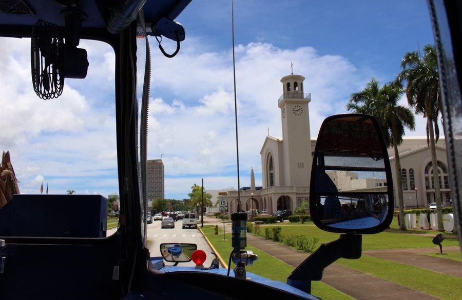 グアム・ハガニャ地区の歴史建造物をめぐるドライブを楽しみ、バスは一路グアムの海へ。水飛沫をあげて海にバスがダイブしたら、バスでの海上クルーズをお楽しみください。