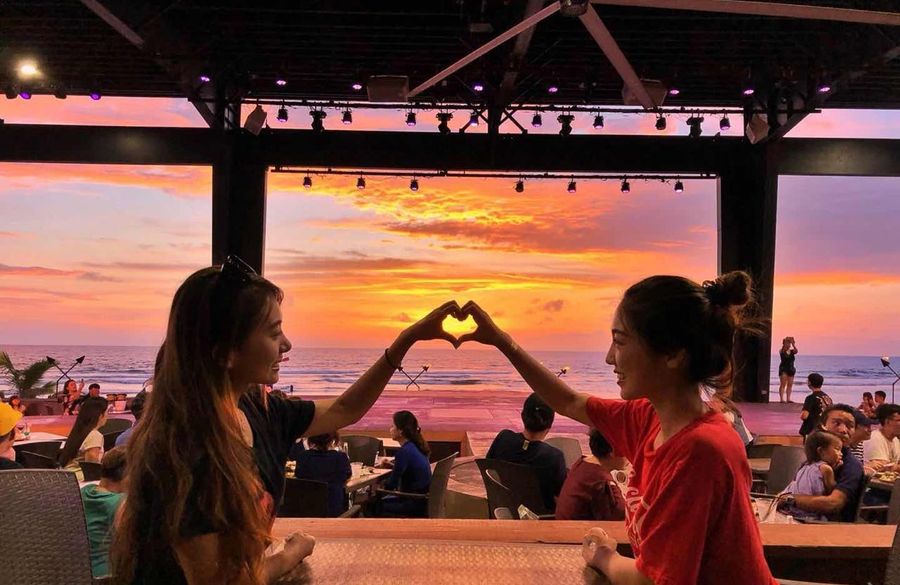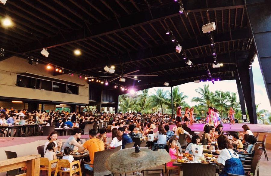 カラフルなアイランド衣装とビーチ上に設置した本格的なシアター設備により、華やかで息を飲むパフォーマンスを楽しむことができます。