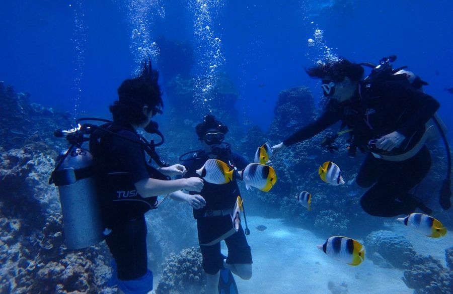 水深3~7メートルほどの浅いポイントで、南国特有のカラフルな魚が見えるポイントで体験ダイビングを開催します。