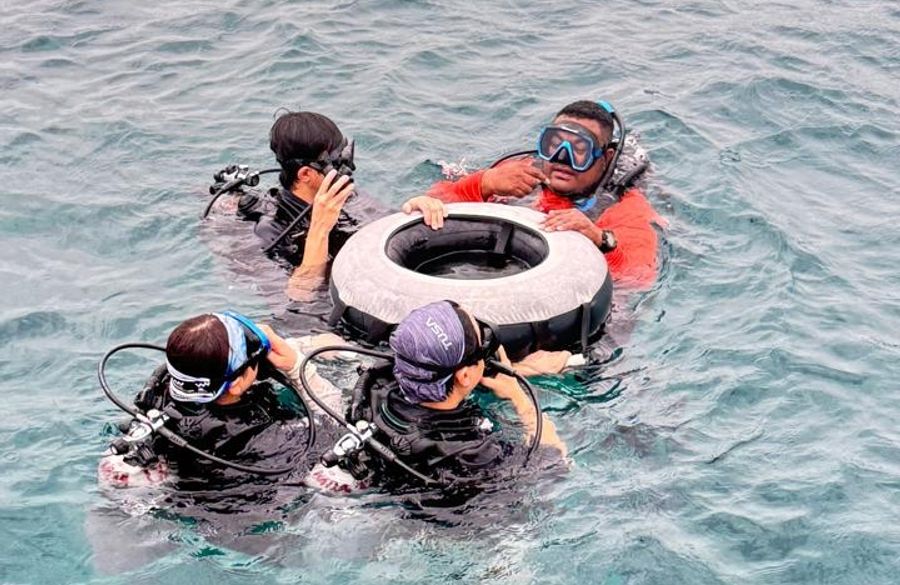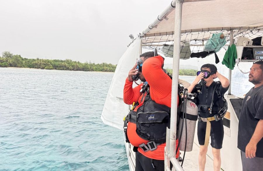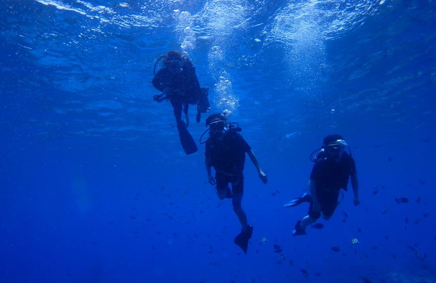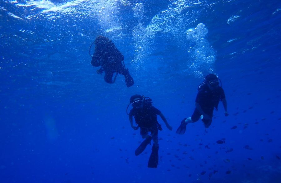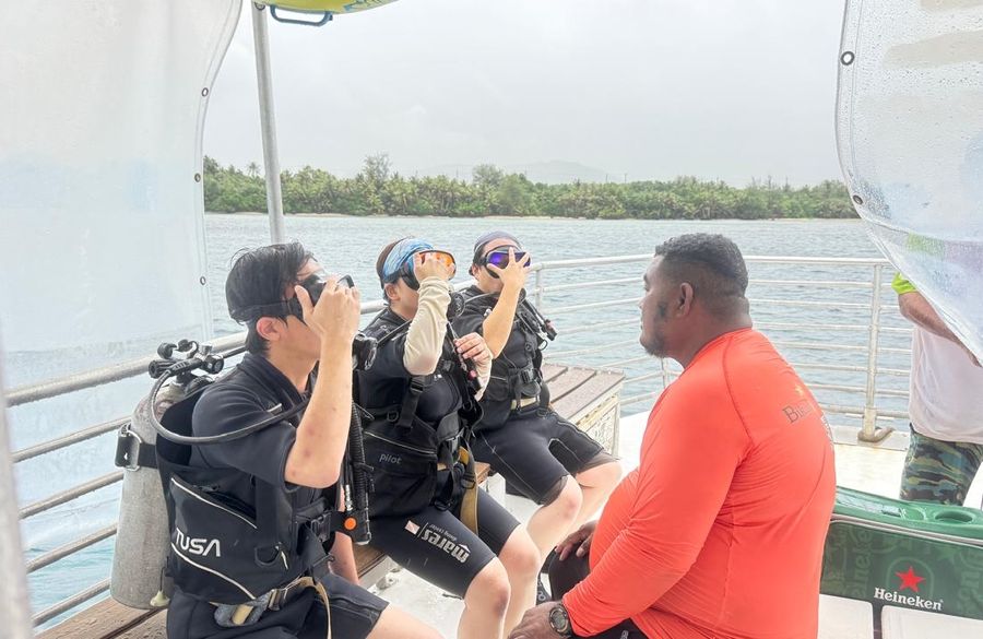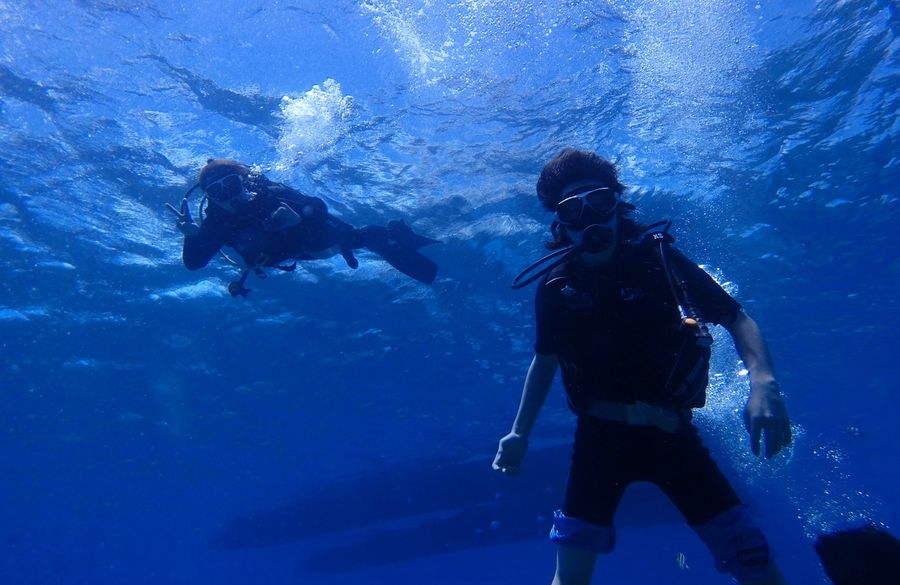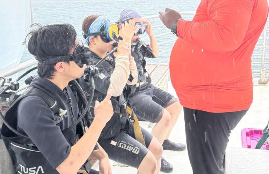 器材の使い方や水中での注意事項、トラブル対処法等ガイドからダイビングに関する説明を行います。