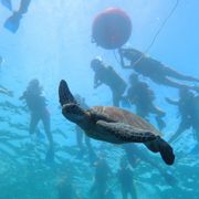 A: 90%~の確率でウミガメを見る事が出来ますが、天候状況によって見れない場合もございます。
