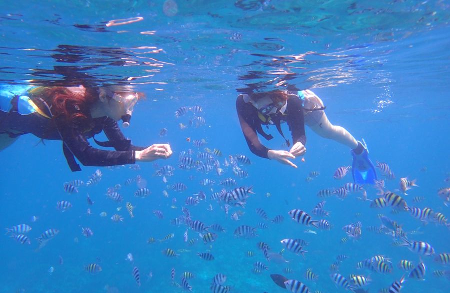 水深3~7メートルほどの浅いポイントで、南国特有のカラフルな魚が見えるシュノーケリングを開催します。