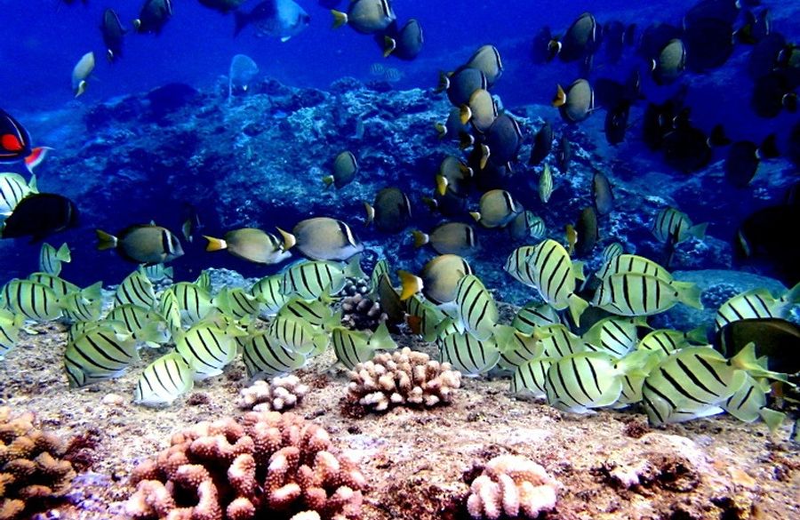 流れが穏やかなハナウマ湾はハワイで唯一の海洋自然公園で、さまざまなハワイの海洋生物が生息してます。
