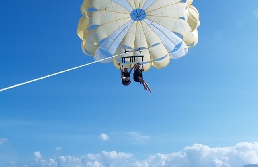 そしていよいよ山から海へ!3段階の高さを選べるパラセイリングでエメラルドブルーの海を見下ろしながら鳥になった気分をお楽しみください。