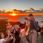 早朝ハイキングは登っている時は辛かったけど、やはり絶景でした。ハワイ旅行の中でも、1番思い出に残っています。朝焼けがとにかく綺麗で感動したんです。意外と山頂付近の道は狭いですが、ハイキング初心者でも登りやすいコースだと思います。私自身、山登りは初めての体験でしたが、最後まで登りきることが出来ました。子どもは厳しいかもしれませんが、大人なら楽しく余裕でクリア出来るはずです。天気も良かったので最高の思い出になりました。