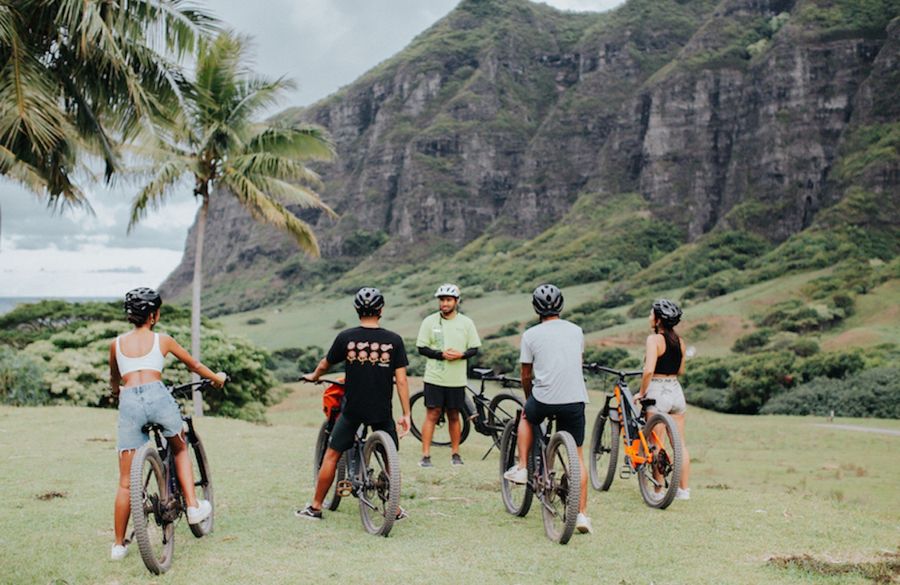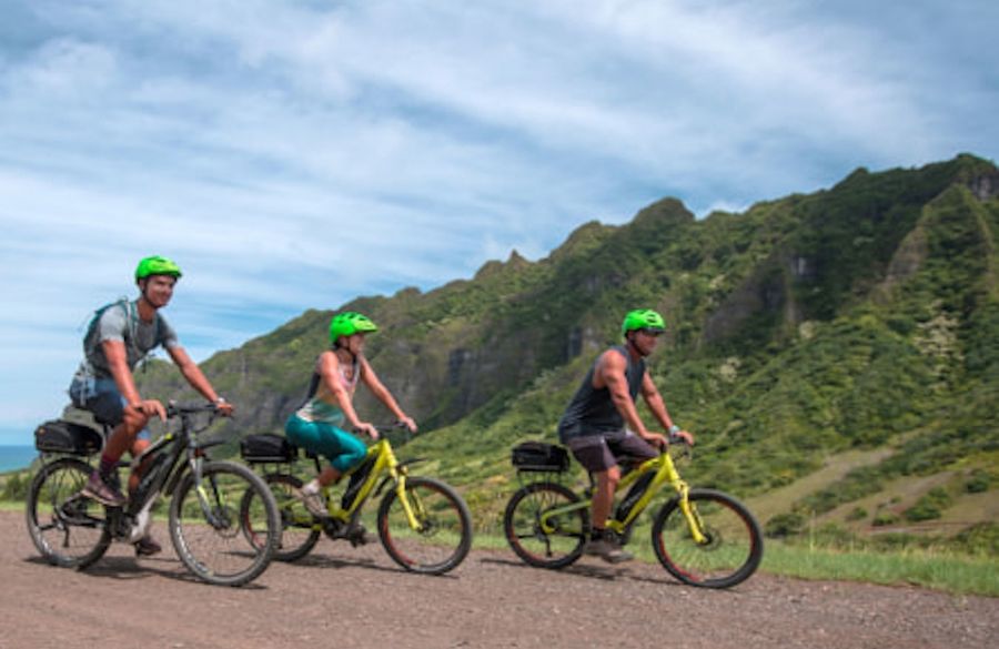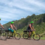勾配や未舗装のトレイルなど、さまざまな地形を巡る中級者向けのツアーです。オフロード用の電動アシスト付きマウンテンバイクで、雄大なクアロアの大自然の中を巡るのでエコフレンドリー。ジャングルや尾根、写真撮影スポットを含む約24キロのコースを自転車で駆け抜けます!
