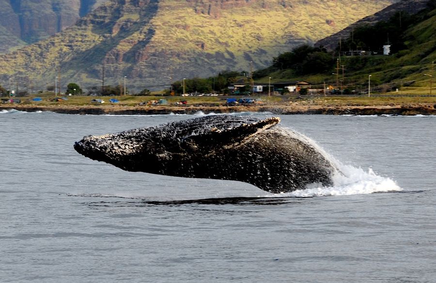 何千頭ものザトウクジラが島にやってくる冬は、ハワイの海の最もエキサイティングな季節。ザトウクジラは、アラスカからハワイ沖の浅くて暖かい海域で繁殖のためにやってきます。 体長 3.5 メートルほどのザトウクジラが浅瀬にたくさん集まってきます。潮吹きや、腹ばいになったり、尾を叩いたり、ヒレを叩いたりするブリーチングを見ることができます。シーズン中旬には子クジラを連れた母親の姿も見られるかもしれません。帰りにはハワイの美しいサンセットも一緒に体験できます。