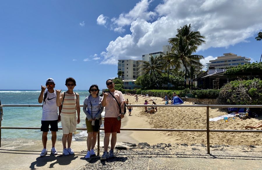 スタートはワイキキでカラカリア通りを渡りオーシャンバックをビューに記念撮影もできました。