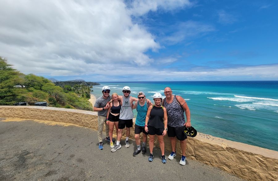 途中マカレイビーチパークやアメリア・イヤハート・ルックアウトに立ち寄り、ダイアモンドヘッド周辺をライドしてワイキキに戻るコースです。