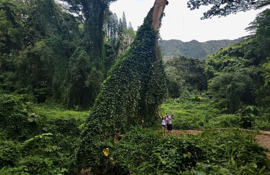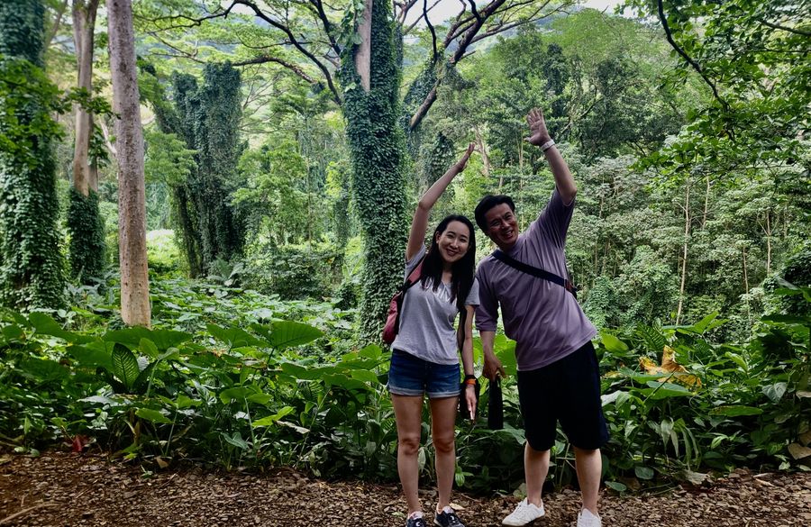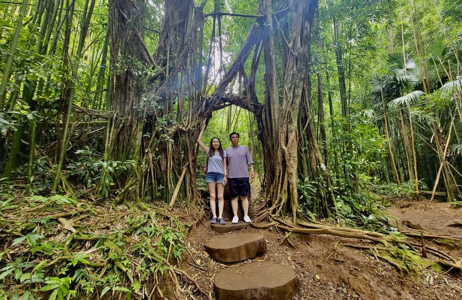 ワイキキからマノアの滝まで片道約50分のライド。ジャングルのような大自然の森の中をかき分けるように進み、鳥の声を聞きながら、マイナスイオンを感じ癒やされながらのハイキング。とても神秘的です。