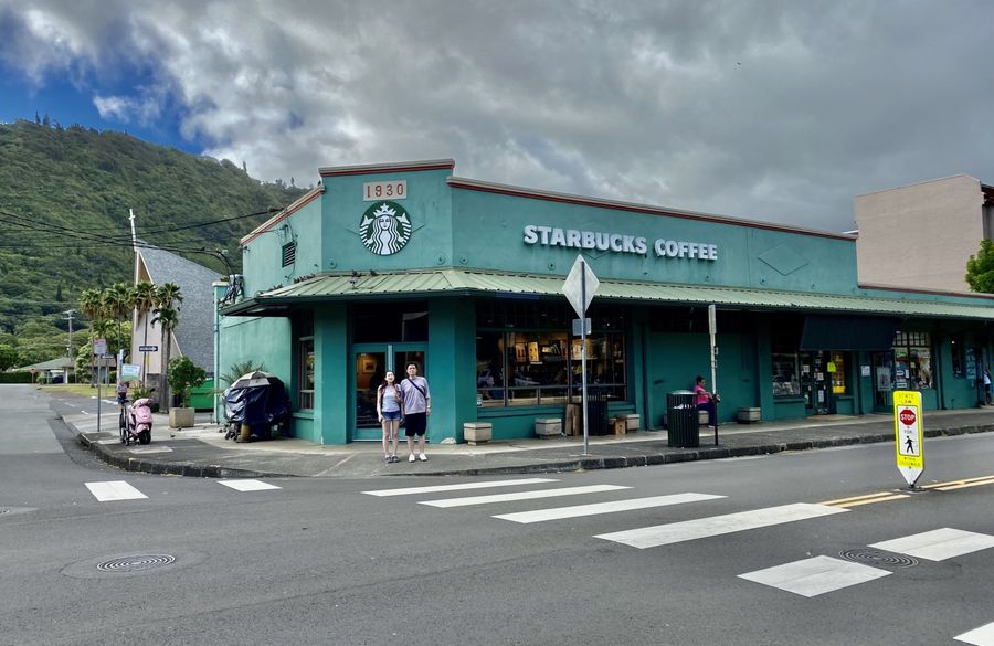 最後は、マノアと言えば有名な緑のスターバックス前での記念写真。その後ワイキキに戻ります。