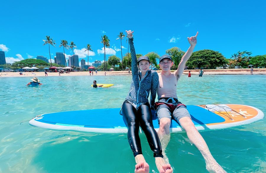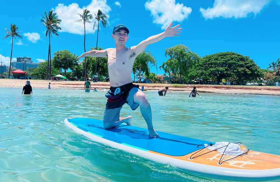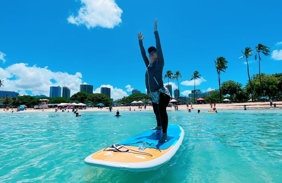 サーフィンは苦手なのですがサップボードの上で行うヨガというのに興味があってYouTubeなどで見ていたのですが、ハワイでこの体験ができると見てついに夢を叶えました!日本人だけではなくて本場のアメリカ人もサップヨガをやっていることに感動しましたし、意思疎通は少し難しかったのですが、同じ趣味を持つということで短時間ですが意気投合しました。波も穏やかだったのですが、バランス感覚を取るのが難しく体の内側から筋肉を使ったような感じがしました。インナーマッスルを鍛えたい人にはおすすめかもしれません!
