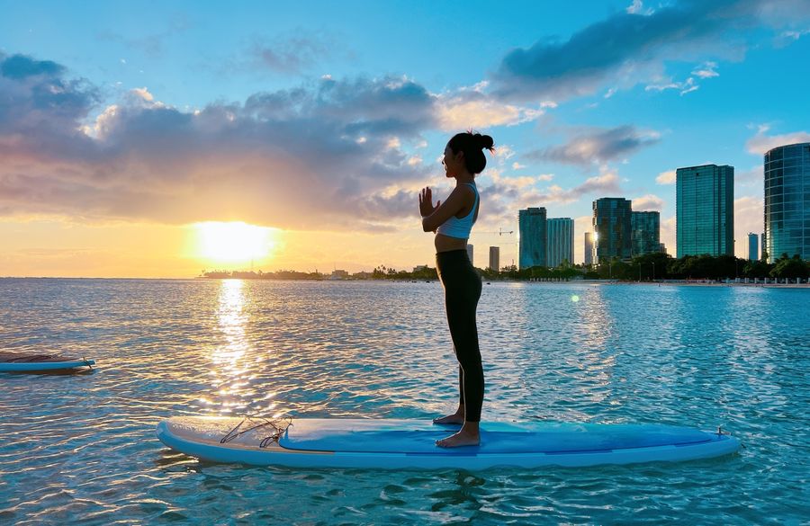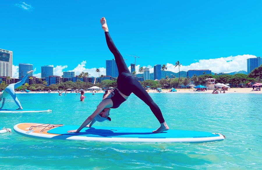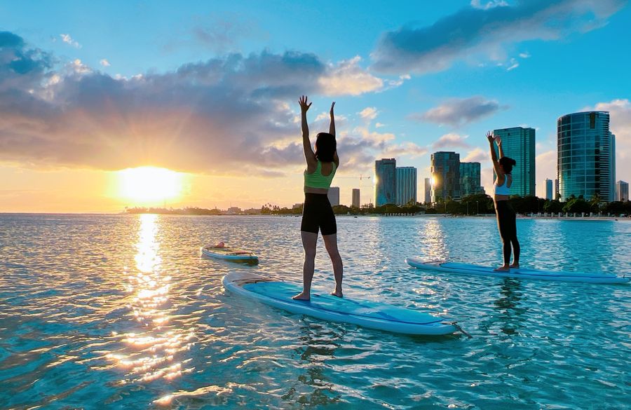- SUP Yoga! (サップヨガ) SUP Yoga! アラモアナビーチでサップヨガ体験! 【送迎無し、SUPレンタル機材込み、日本人インストラクター】By カパリリ・ハワイ