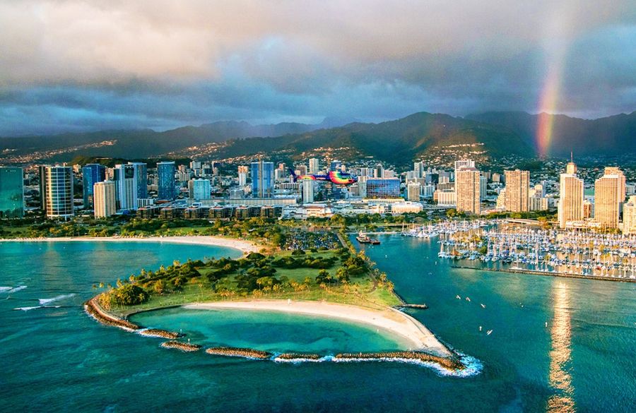 View the beautiful Honolulu City to the Waikiki Horizon from a Helicopter (Doors on or off, 20 minutes, shared tour)