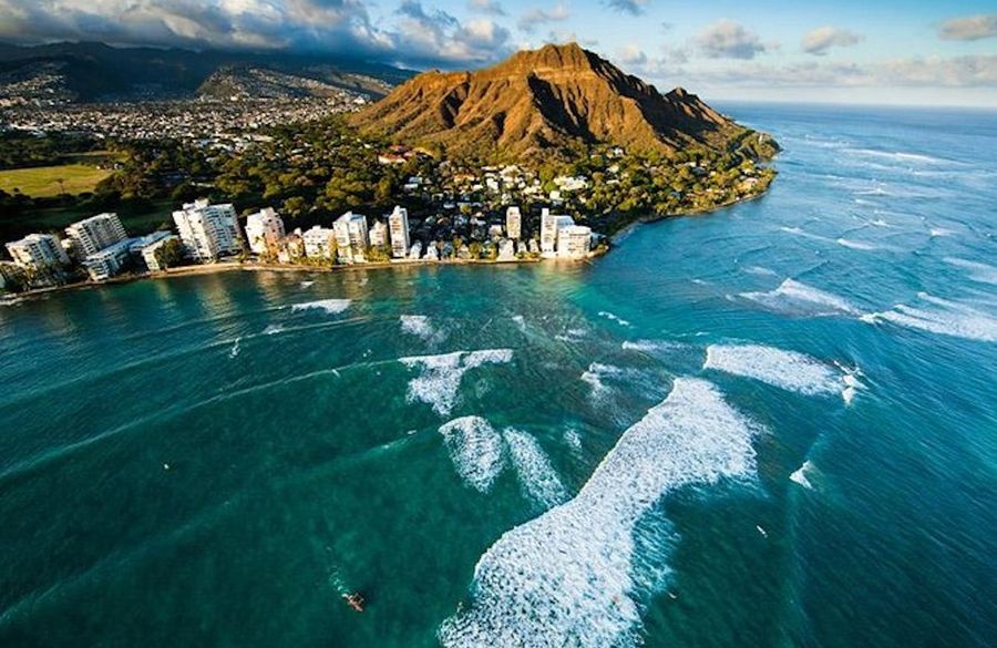 As you continue your tour up the island’s Windward Coast, you’ll see the storied Ko’olau mountains in the distance, quietly watching as you pass over Lanikai Beach – often called the most marvelous beach in the world – and the offshore sandbars and coral formations that make Kaneohe Bay one of the most picturesque places on Earth. This Kaneohe Bay helicopter tour is a terrific opportunity to see the sunset beach, Waikiki Beach.