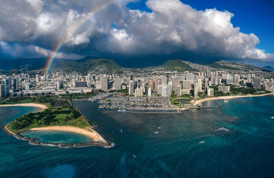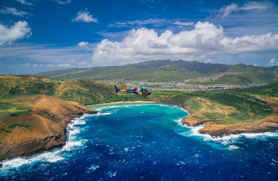 Rainbow Helicopters is Hawaii’s premier provider of Oahu helicopter tours and private helicopter charters. Onboard our fleet of Robinson R-44 and Airbus Astar helicopters, passengers can choose from a variety of premium flight experiences! Rainbow Helicopters flies spectacular Oahu helicopter tours from our base at Honolulu International Airport. We offer a variety of daytime helicopter tours, as well as romantic proposal flights and luxury picnic experiences. For guests seeking an exclusive experience, we also offer private helicopter charters for both intra-island and inter-island private charter flights. We can get you where you want to go: Big Island volcanoes and lava, Haleakala on Maui, the sea cliffs of Molokai, the rainforests along the Na Pali coast, as well as surf events, and more. Fly with Rainbow for the best helicopter tours Oahu has to offer!