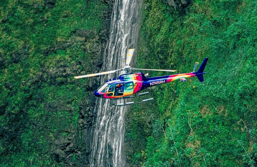 Rainbow Helicopters flies the skies of Hawaii in Robinson R-44 aircraft with a seating capacity of 3 passengers per flight. We also fly an A-star aircraft with a seating capacity of 6 passengers. We often accommodate parties of 4 or greater. In the case of medium-large parties, we may fly 2 or more helicopters at the same time in sequence around the island.