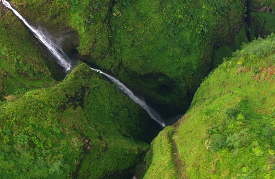 Halfway through the flight, you’ll pass over the famed Kualoa Ranch, known for its role in Jurassic Park. Excitement builds as you begin your graceful descent to commence your 15 minute stay inside an undisclosed, private and lush oasis, away from the crowds and tourist attractions. Your visit here includes Waialua chocolates, a champagne toast, leis and memories that will last a lifetime. Rising back into the blue sky, your helicopter takes you to explore the lush forests and emerald cliffs of the awe-inspiring Ka’a’awa Valley and fly in close for a view of Oahu’s highest waterfall, Sacred Falls.