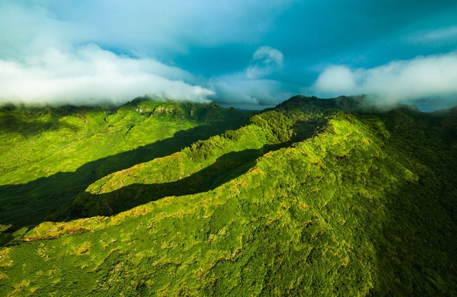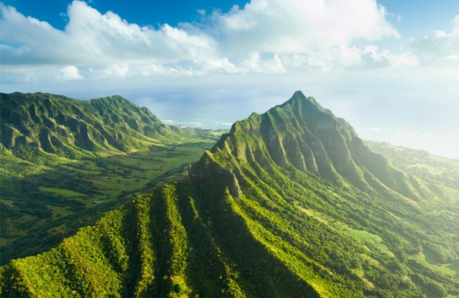 Your private helicopter tour begins over the island’s South Shore for a chance to see the familiar Waikiki skyline and Diamond Head crater as you’ve never seen them before. You continue on to Hanauma Bay’s beautiful sheltered waters and the nearby cliffs and volcanic outcroppings – beautiful remnants of the island’s fiery volcanic past. Rounding Makapu’u Point, you follow the Windward Coast and its long stretches of white sand beaches and turquoise waters as they lead you towards the gorgeous mountains beyond. You turn inland to see the three sharp peaks of famous Mt. Olomana, characteristic of its english translation, “divided hill.”