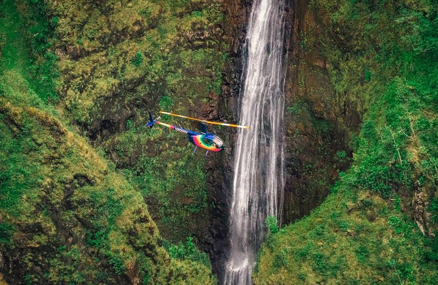Rainbow Helicopters is Hawaii’s premier provider of Oahu helicopter tours and private helicopter charters. Onboard our fleet of Robinson R-44 and Airbus Astar helicopters, passengers can choose from a variety of premium flight experiences! Rainbow Helicopters flies spectacular Oahu helicopter tours from our base at Honolulu International Airport. We offer a variety of daytime helicopter tours, as well as romantic proposal flights and luxury picnic experiences. For guests seeking an exclusive experience, we also offer private helicopter charters for both intra-island and inter-island private charter flights. We can get you where you want to go: Big Island volcanoes and lava, Haleakala on Maui, the sea cliffs of Molokai, the rainforests along the Na Pali coast, as well as surf events, and more. Fly with Rainbow for the best helicopter tours Oahu has to offer!