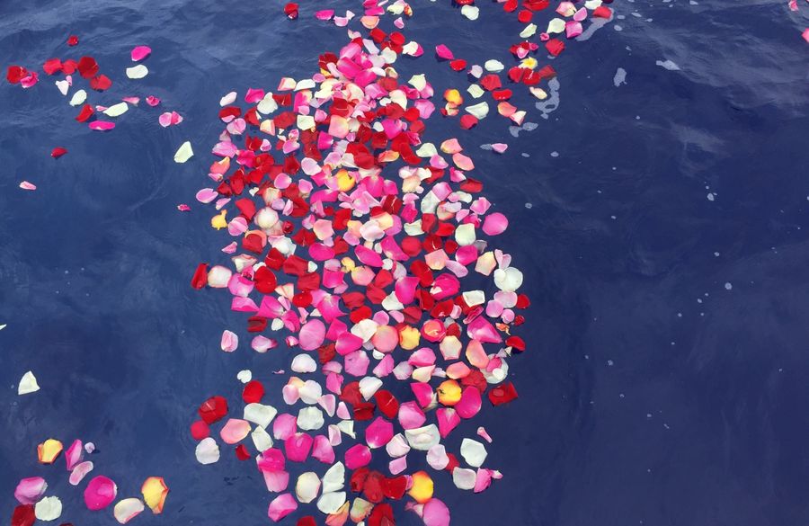 ●海洋散骨ご希望の方には、オプションでバラの花びら1ダース半(12本以上)$50もご用意できます。
