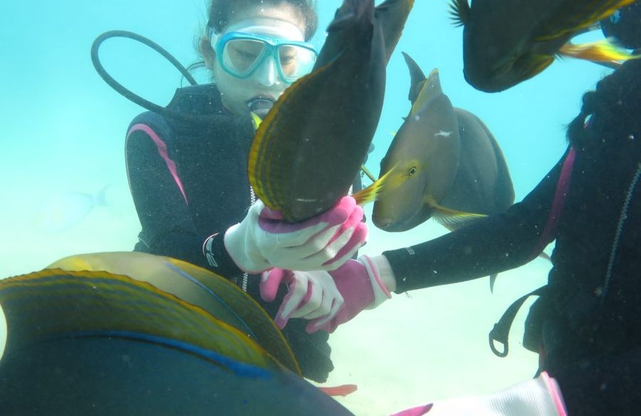 潜る場所は、ダイヤモンドヘッドのふもとのカイマナビーチ、最大水深2~3メートル前後、ハワイの固有種の魚はもちろん!たくさんの魚が見られ、楽しいハワイダイビング体験が出来ます。