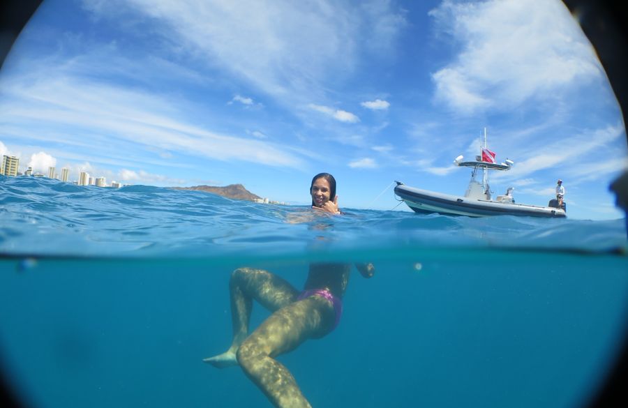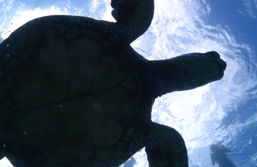 貸切ボート(チャーターボート)でウミガメ遭遇率98%のワイキキ沖合いのウミガメポイントで