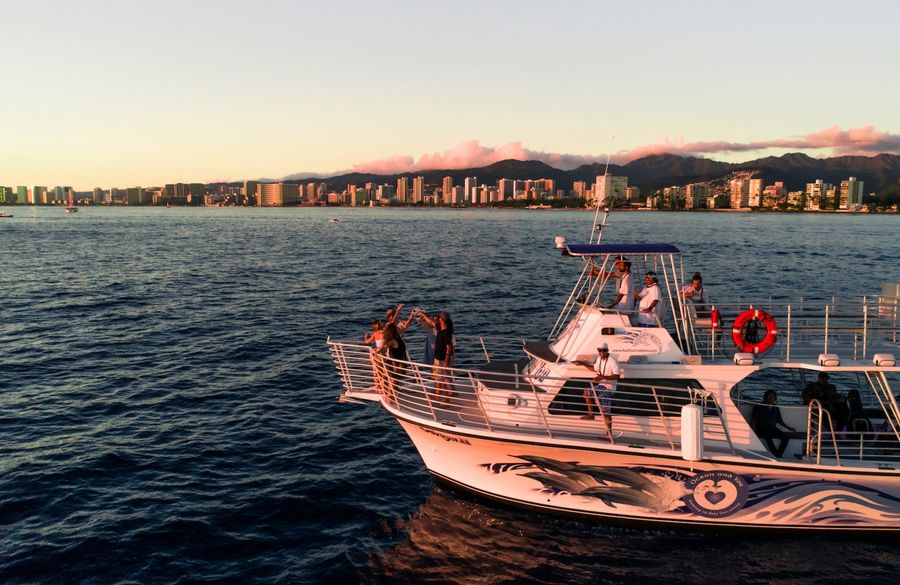 最新型パワーボートに乗ってハワイの海に沈むサンセットとワイキキの夜景を堪能!