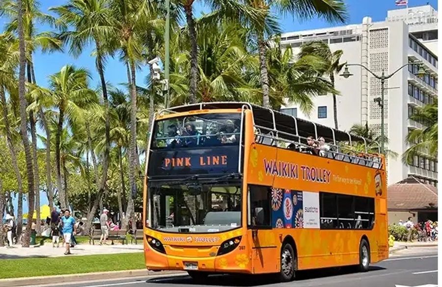 トロリー全ライン7日間乗り放題です。ワイキキトロリーは全面オープンエアで快適!乗り降りも自由です。 ハワイの気持ち良い風を体で感じながら、ワイキキやホノルル市内、カメハメハ大王像やイオラニ宮殿などのハワイの歴史・文化観光スポット、ショッピングスポット、青い海を見に出かけましょう!楽しいドライバーが皆様をお連れいたします♪