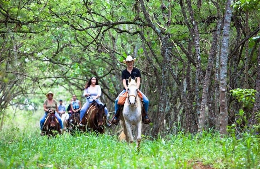 本物のハワイの大自然を感じられる場所、ノースショアの隠れ家的牧場 ガンストックランチで乗馬を楽しみましょう。