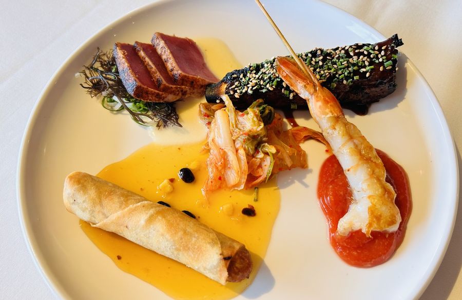 【メイン】鮭、マグロ、旬の魚、海老、ダック、ポークなどのハワイアンフュージョン料理から当日選択。