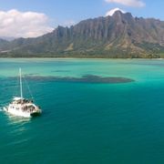 美しい浜辺で待ち受けるカタマラン(双胴船)に乗り込み、穏やかなカネオヘ湾をのんびり周遊。ボートから、美しく輝く海と、海から望むコオラウ山脈のコントラスト、クアロアの壮大な景色をご堪能いただけます。コース途中のサンゴ礁エリアでは、息継ぎのためにぽっかりと頭をあげる可愛いウミガメの赤ちゃんでに出会えることも。360度見渡せるデッキでは、ハワイの爽やかな海風を体感していただけます。