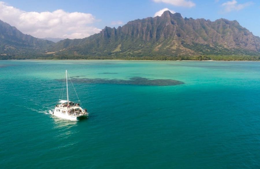 - カタマランボートでカネオヘ湾を優雅にクルーズ♪ オーシャンボヤージ クアロア牧場【送迎なし】
