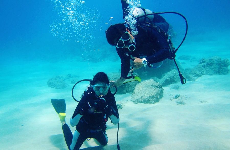 当日は私達2人だけでとても丁寧に教えて頂けて、強風で波もあったのですが、浅瀬のレッスンの後で外海に連れていってくれました。海模様から諦めていたのですが、ウミガメとも出会えてビックリ!次回はボートダイブに挑戦しようと話しています。初心者でも安心して体験できましたので、オススメです。