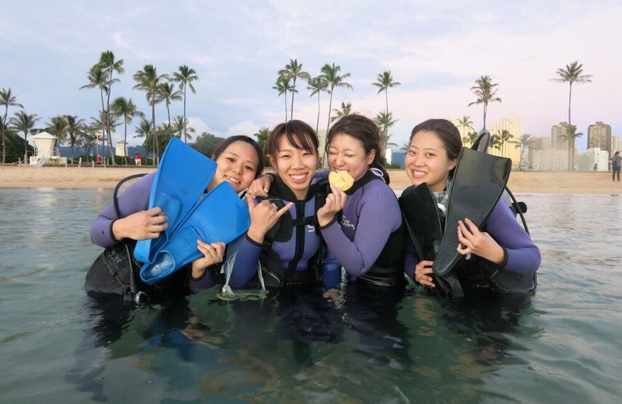 ハワイココスタイルの体験ダイビングツアーでは経験豊富なインストラクターが誘導するので安心してダイビングを経験することができます。