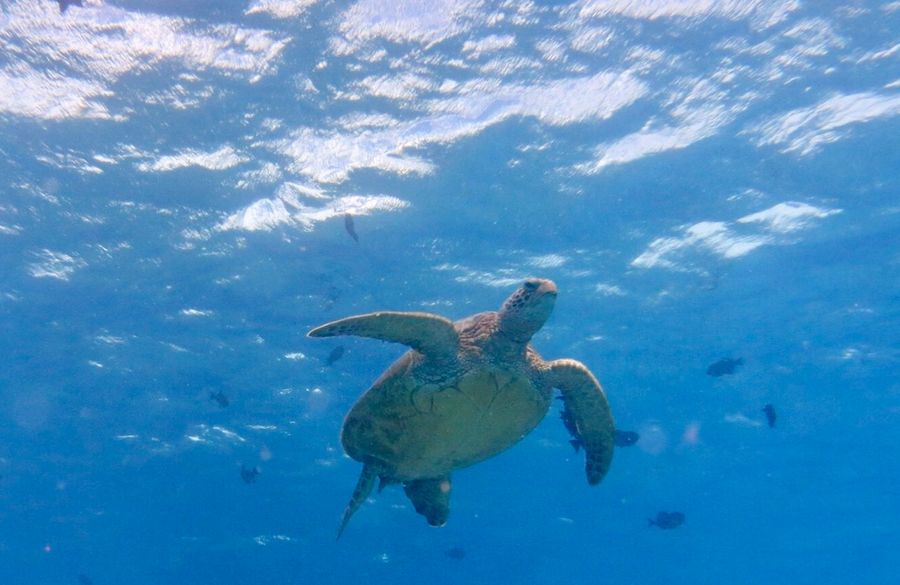 水中だけでなく、呼吸のために水面へ上がってくるウミガメも見ることができ貴重な体験ができました。