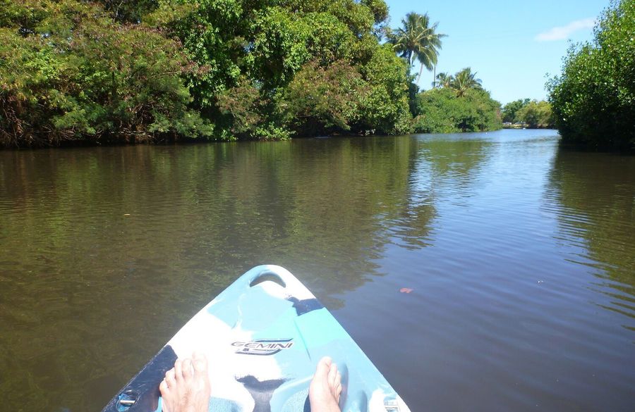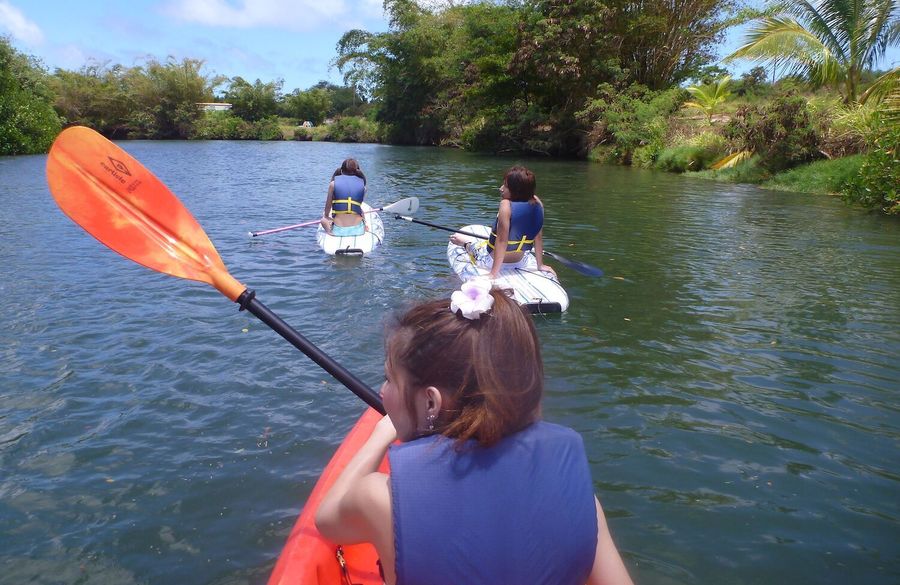 誰でも簡単に楽しめるカヤック、スタンドアップパドル (SUP) で流れ、波のないジャングルクルーズ。スタート前にベテランインストラクターが乗り方の講習を行います。川を少し上がると自然の音しか聞こえず、のんびりと水上を漂うことが出来ます。新しいノースショアをご体験ください。