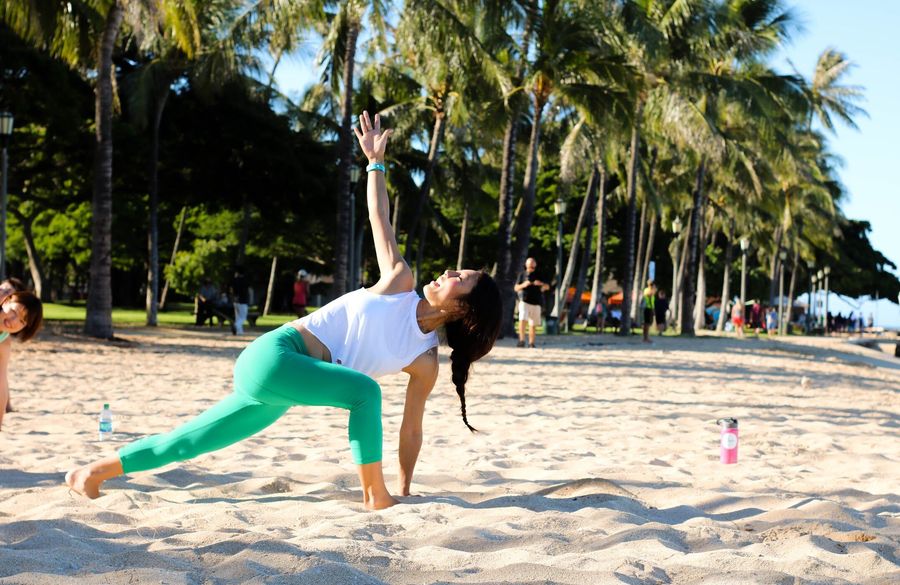空気の澄んだ静かな早朝のワイキキビーチ、大自然の中、思いっきりキレイな空気を体に取り入れながらのヨガは心と体のデトックスになり、ポジティブにしてくれます。