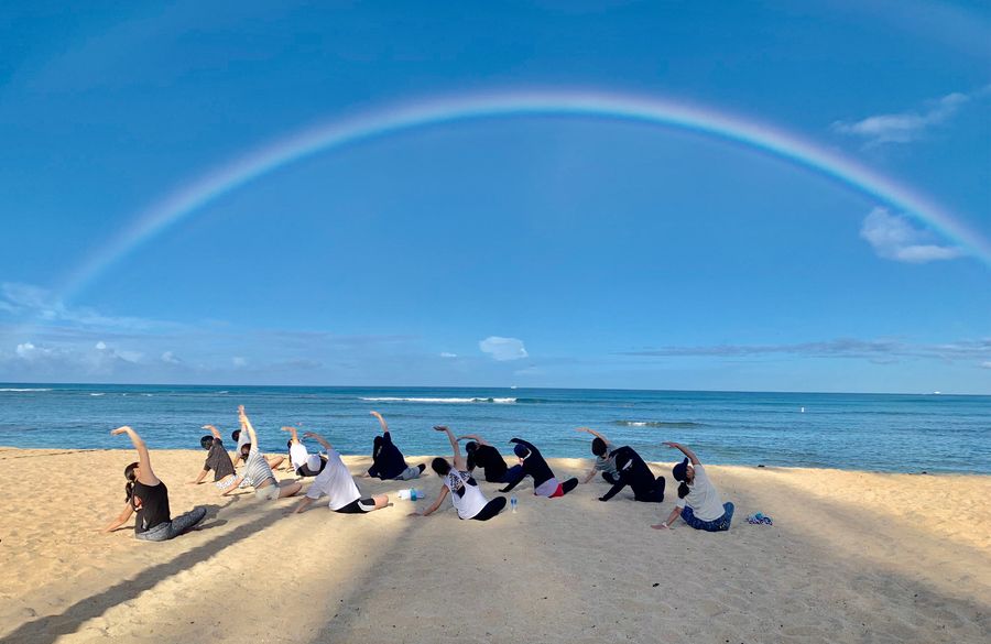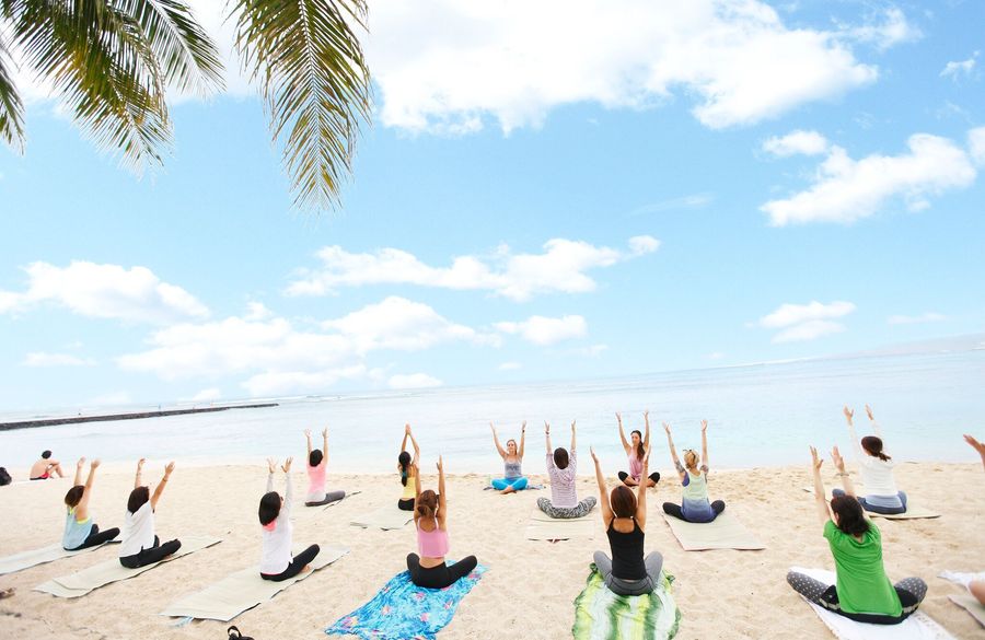 コロナの影響で人数制限がありましたが、ハワイのワイキキビーチでやるヨガは快適でした。