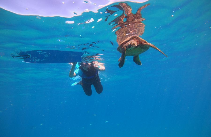 今回はエレクトリックビーチに連れて行っていただき、ホヌと泳ぎ、遠くにイルカも見ることが出来てラッキーでした。水温がまだやや低かったので途中疲れてしまったのですが、プライベートなので私の状況に合わせて少し早めに切り上げていただいたり、大変助かりました。