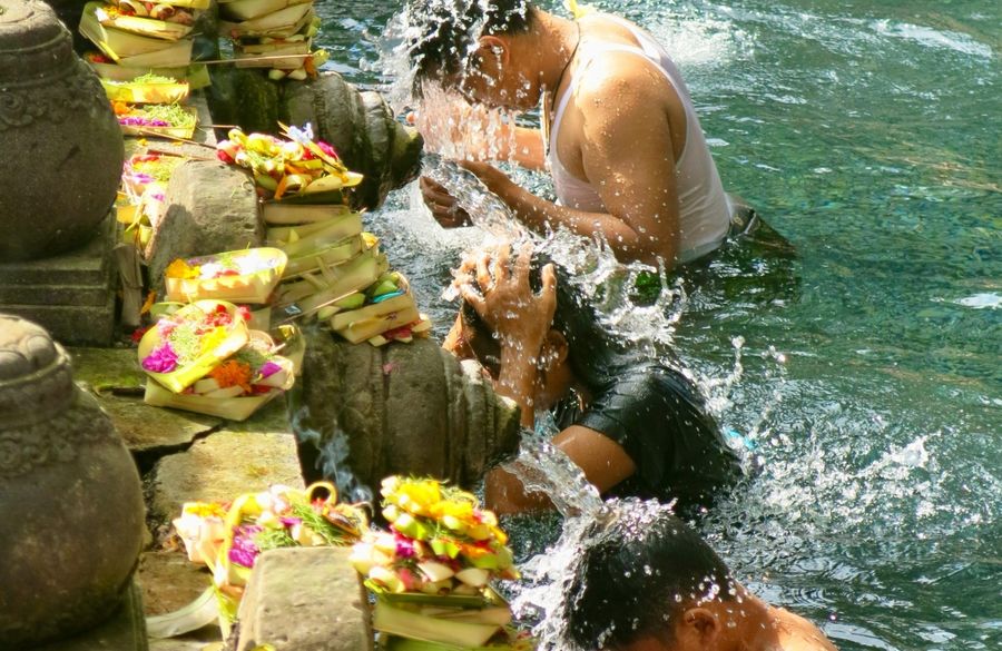 バリの人々に根付く信仰心を感じ、共に沐浴(ムルカット)体験。