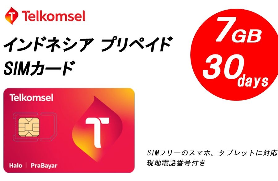 インドネシア国内でシェア率No1のTelkomselのプリペイドSIMカード。追加チャージもコンビニなどで簡単に出来て、便利です。