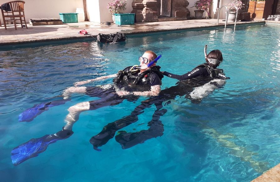 Eラーニングにて、バリ島へ来られる前までに学科講習はすべて済ませて、プールと海洋実習はバリ島にて行う、3日間でライセンスが取得できるコースです。
