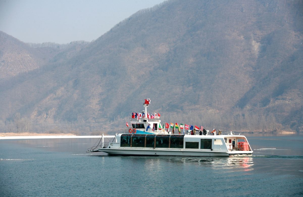 南怡島(ナミソム)はソウルから北東に50km、ソウルを東西に流れる大河・漢江(ハンガン)の上流にある江原道(カンウォンド)・春川(チュンチョン)の中州です。下流の清平(チョンピョン)ダムの建設によってできたこの島は、ペ・ヨンジュン、チェ・ジウ主演の韓国ドラマ『冬のソナタ』のロケ地になったことによって一躍人気の観光地になり、現在も韓国国内のみならず、海外からもたくさんの人々が訪れています。島内には一番の見どころメタセコイア並木道に加え、冬ソナのロケ地が各所に点在しています。その他、イチョウ並木や動物園、子供列車などがあります。島へは渡し舟に5分くらい乗って渡りますが、ジップワイヤーという一人用のロープウェーもあり、若い人を中心に人気があります。